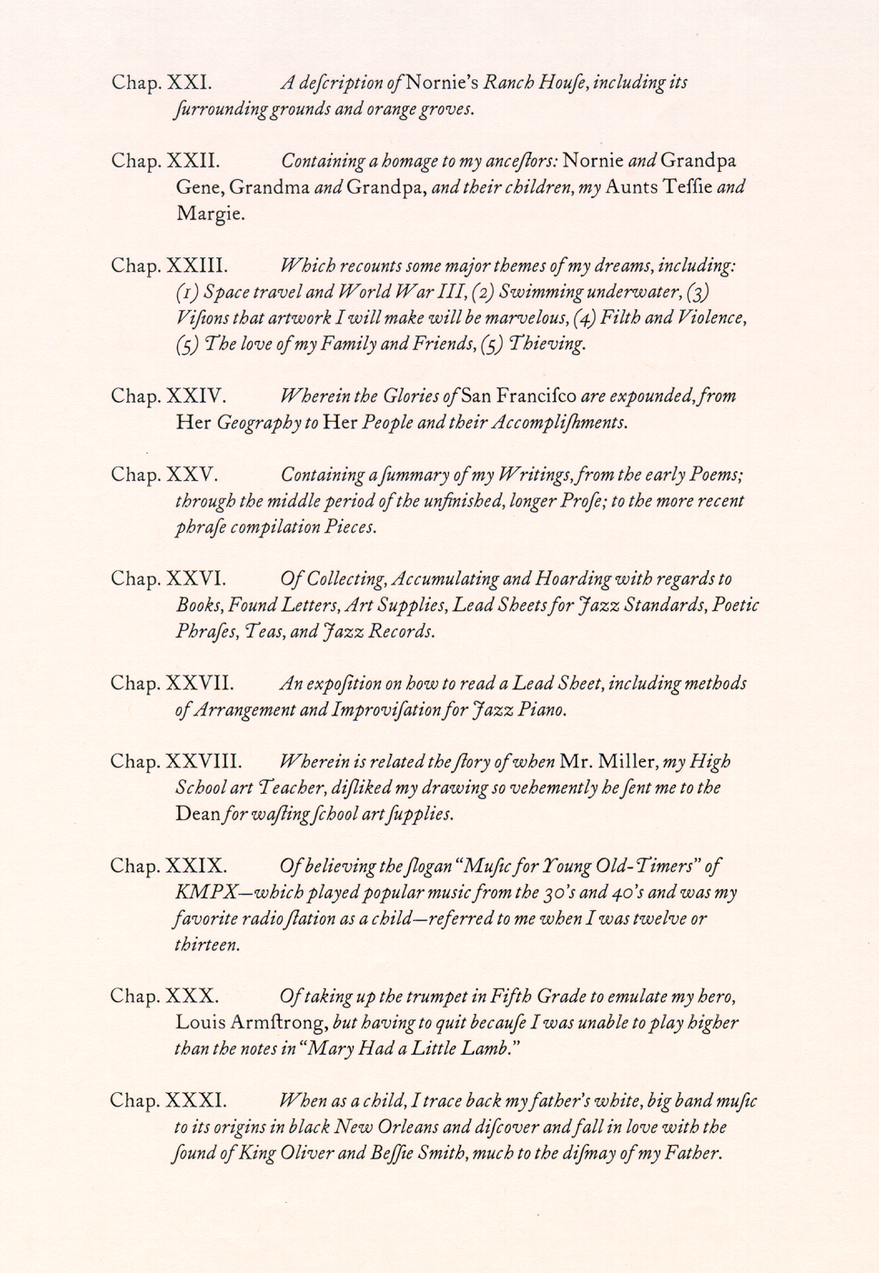 | table of the chapters III |
