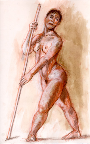| red, brown, and white chalk with brown ink wash on paper |